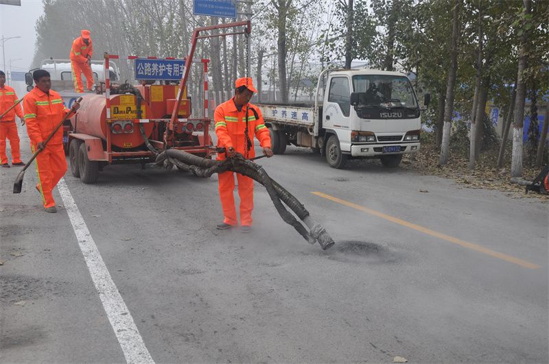 應用范圍:     砂封層主要應用于高速公路,一、二級公路瀝青路面的預防性養(yǎng)護。可以進行美化路緣、路肩施工。經過砂封層施工后可以改變新舊路面的外觀及顏色。施工說明:砂封層是一種層鋪的施工工藝。采用同步碎石封層設備將聚合物改性粘結材料和骨料金剛砂同時撒布施工的一種施工工藝。粘結材料應選擇高濃高粘且具有一定滲透型和還原性。骨料需選擇耐磨的金剛砂。技術特點:(1)常溫施工,無需加熱,節(jié)能環(huán)保。(2)用來解決瀝青路表面瀝青老化出現(xiàn)的貧油狀況。(3)解決原路面出現(xiàn)的麻面、松散掉粒、輕微裂縫等現(xiàn)象。(4)新路面可以起到防水的作用。(5)增加路面摩擦系數(shù)和耐磨性能。施工工藝:封閉交通→清理路面→病害處理→砂封層施工→養(yǎng)生→開放交通